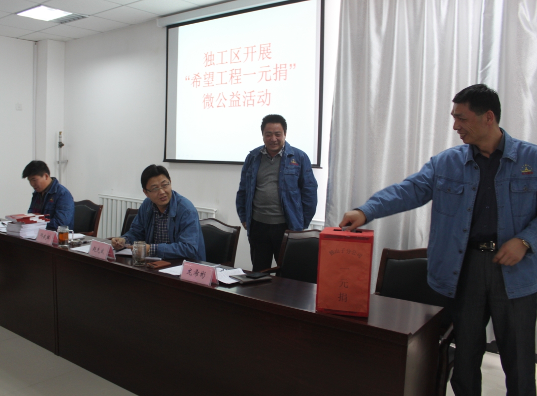 根據集團公司團委“希望工程1元捐”微公益活動(dòng)通知要求,獨工區團支部認真領(lǐng)會(huì )通知精神,積極召開(kāi)了宣傳動(dòng)員會(huì )議,組織工區團員青年、業(yè)務(wù)、管技人員開(kāi)展了 “希望工程1元捐”微公益活動(dòng),為希望工程奉獻愛(ài)的力量,為需要幫助的人們送去一份溫暖。