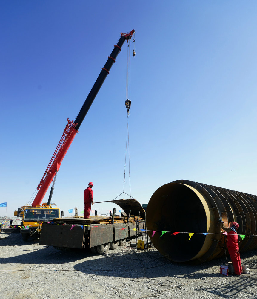 據悉,4月8日,奎屯河東干渠一級站破土動(dòng)工。為了搶在農業(yè)用水到來(lái)之前完成渠道通水任務(wù),獨工區精心組織施工隊伍,由副主任王朋朋和項目經(jīng)理王山焱負責,將43名安裝工人分成下料組、卷板組、組對組、焊接組四個(gè)班組,大家分工合作,通力配合,發(fā)揚能吃苦敢打硬仗的北方精神,吃住在施工現場(chǎng),加班加點(diǎn)進(jìn)行24小時(shí)輪流作業(yè)。在較短短時(shí)間內完成了100米長(cháng)的直徑分別為3米、2.5米各50米約100噸重的管道制作穿越東干渠安裝任務(wù)。
