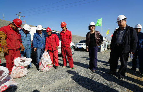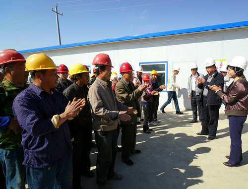 吳新平在兩個(gè)工地現場(chǎng),與建設者們一一握手,感謝他們?yōu)槠邘煱l(fā)展、為“三化”建設做出的貢獻。每到一個(gè)工地,她都了解當前工程項目的進(jìn)展情況,關(guān)切詢(xún)問(wèn)員工的工作和生活情況,鼓勵他們增強主人翁意識,立足崗位、創(chuàng )新業(yè)績(jì),與企業(yè)一起共克時(shí)艱、共促發(fā)展、共享成果。