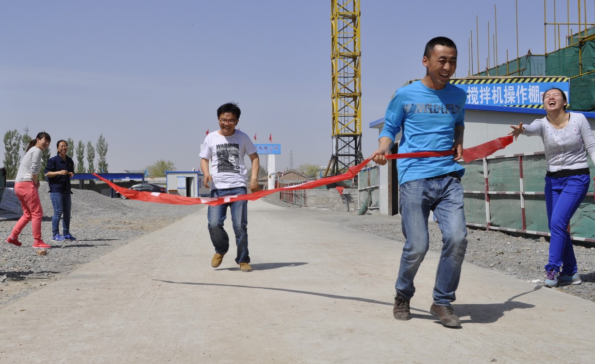 接下來(lái)為男女混合接力賽,選手們在工地的百米“跑道”上展開(kāi)了激烈角逐?!邦A備、開(kāi)始”話(huà)音還沒(méi)落實(shí),只見(jiàn)資料員胡麗莉一馬當先的跑在了前面,井雙雙奮起直追,最終加速度超過(guò)了爆發(fā)力,井雙雙組以微小的優(yōu)勢獲得了冠軍。