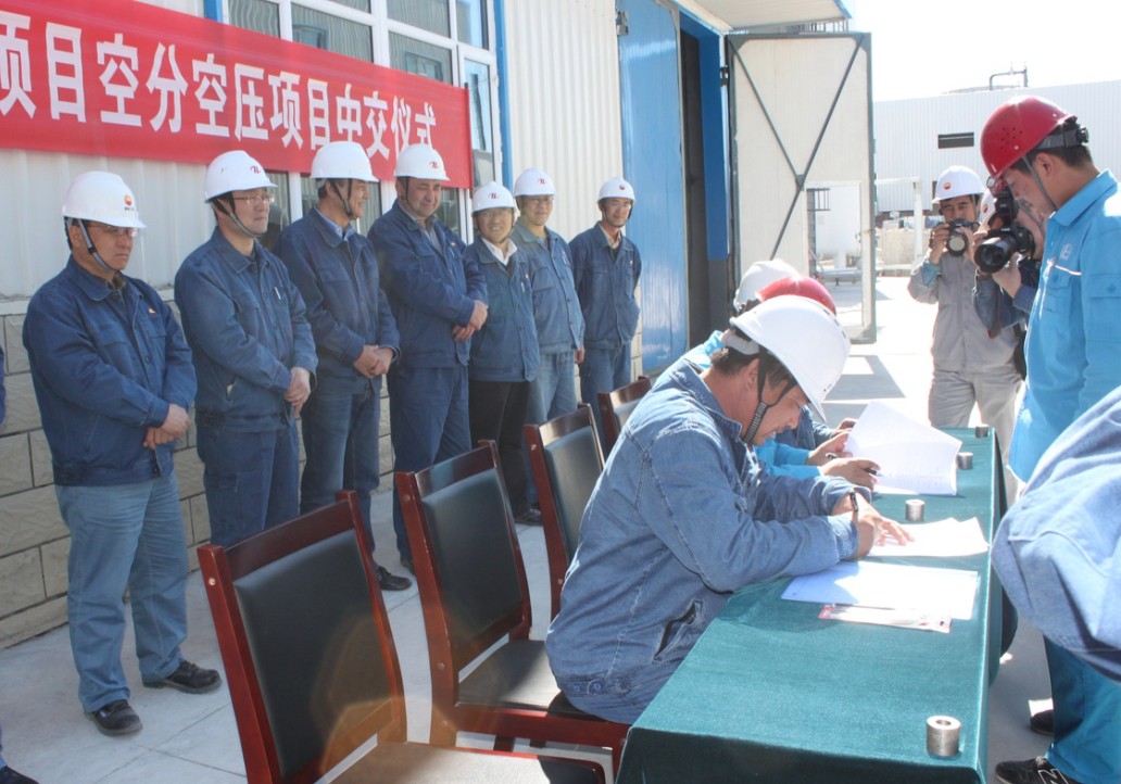 (通訊員 李維維)430下午,由北方建設集團獨工區承建的獨山子天利實(shí)業(yè)總公司輕餾分利用項目空分空壓裝置聯(lián)合廠(chǎng)房工程在天利實(shí)業(yè)廠(chǎng)區舉行簡(jiǎn)樸高效的中交儀式,新疆寰球工程公司、吉林夢(mèng)溪監理公司、獨工區等單位參加了此次中交儀式,工區技術(shù)負責人龍希斌代表獨工區與總包單位新疆寰球工程公司項目經(jīng)理古文斌簽寫(xiě)了中交證書(shū)。