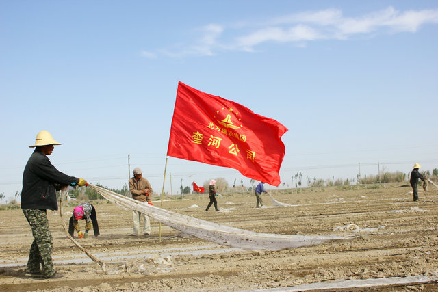 在七師12611連棉田里,早上8點(diǎn)下地,他們用肩拉黑龍管、用手拉薄膜、用鐵鍬壓薄膜邊,手流血了他們沒(méi)有一個(gè)人停下來(lái),干到天黑了才回連隊駐地。