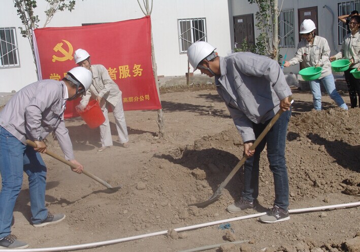 宣誓儀式后,新成立的黨員志愿者服務(wù)隊走向所建設的幾個(gè)項目部,開(kāi)展了施工現場(chǎng)衛生打掃等志愿者服務(wù)活動(dòng)。