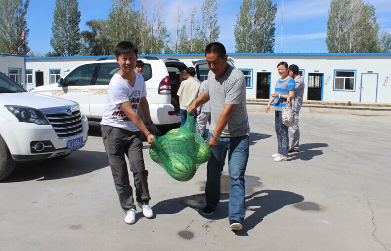 (通訊員:虞俐瑾)6月28日至日30日,烈日炎炎,酷暑難擋,連續的高溫天氣考驗著(zhù)奮戰在生產(chǎn)一線(xiàn)的員工,也心系著(zhù)集團領(lǐng)導。集團公司工會(huì )主席李桂萍、黨辦副主任孟慶忠、團委副書(shū)記晁震一行3人從奎屯出發(fā),趕赴北方建設集團路橋分公司北屯項目部、北屯分公司、富蘊項目部,帶著(zhù)裝有西瓜、大肉、藿香正氣口服液等防暑降溫物品的“大禮包”,來(lái)到施工現場(chǎng)親切慰問(wèn)了一線(xiàn)員工,給他們送去了夏日里的絲絲“清涼”,也帶來(lái)集團公司黨委對員工的一份濃濃關(guān)愛(ài)之情。