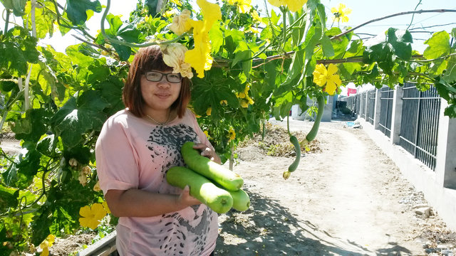 通訊員 虞俐瑾、沈雯雯)821,在北方集團路橋公司五五工業(yè)園第三項目部菜園內,資料員將種植的瓠子摘下端回項目部。