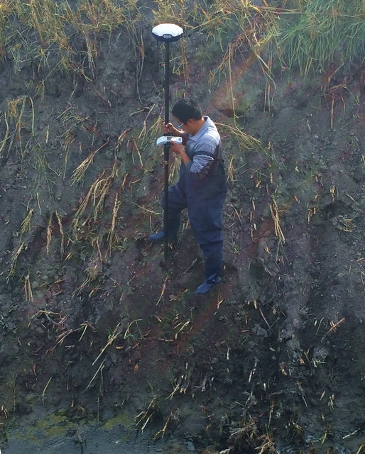 據了解,需測量位置在原排堿渠上,排堿渠底是積水、淤泥和蘆葦根,渠底的淤泥又臭又軟,踩上去人可以陷入3050公分,因為沒(méi)有可以落腳的支點(diǎn),只能從旁邊的樹(shù)林里找來(lái)廢棄的老樹(shù)根用來(lái)墊腳,技術(shù)負責人王煜和施工員柳佳穿著(zhù)下水褲走到渠底進(jìn)行放線(xiàn)和打樁。為了響應公司大干120天勞動(dòng)競賽加快施工進(jìn)度,項目部的所有成員都在努力的工作克服一切困難,想辦法加快工程進(jìn)度,不斷地努力為北方集團添光彩。