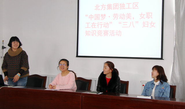 (通訊員 葉兆英) 女職工的四期保護指哪些?家庭美德的主要內容是什么?女職工生育享受不少于多少天的產(chǎn)假?…3月10日,隨著(zhù)一個(gè)個(gè)激烈的問(wèn)答和歡快的笑語(yǔ)聲,北方建設集團獨工區婦女知識搶答賽及婦女維權周活動(dòng)正在四樓會(huì )議室有條不紊地進(jìn)行著(zhù)。