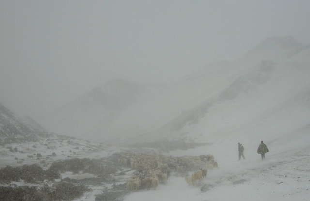 看著(zhù)外面惡劣的天氣,駐137團8連“訪(fǎng)惠聚”工作隊隊員和連隊“兩委”成員是心事重重。雖然在10月16日這天,連隊“兩委”成員和工作隊隊員驅車(chē)深入山區給連隊職工通知了要變天的消息,希望他們盡快從蘇聯(lián)溝等地把羊群趕回冬窩子,提前做好預防冬災的準備,但是大家仍是擔心不已。